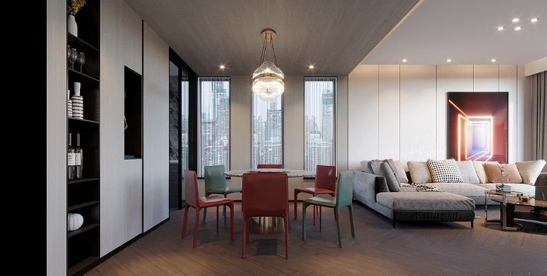 本项目为开发商样板间翻新,业主期望通过重新整装装修设计,展现出时尚且充满现代感的居住空间。