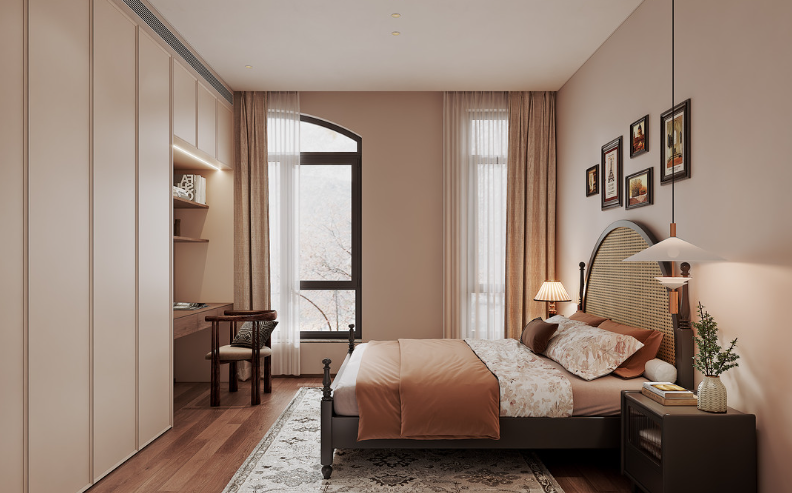 卧室作为休息与放松的私密空间,其半包装修设计需更加注重细节。墙面线条的流畅、吊灯造型的独特以及地面拼花的精致,都是打造优雅卧室不可或缺的元素。我们将精心设计与打造这些细节,确保卧室的每一处都能让您感受到法式的浪漫与优雅。