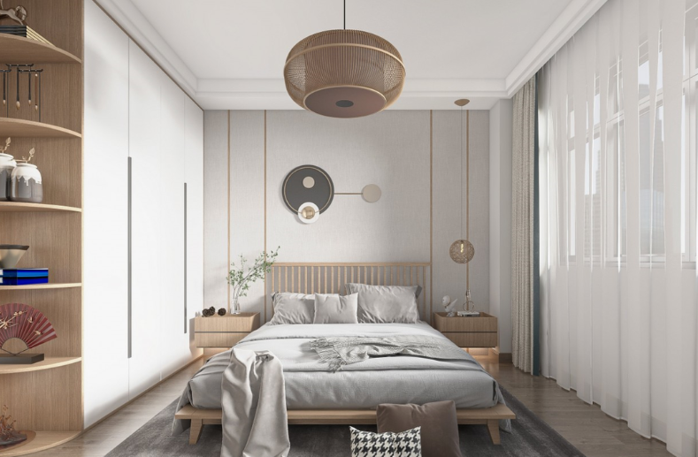 卧室以温润木地板搭配浪漫飘窗,打造温馨惬意的休憩角落。
