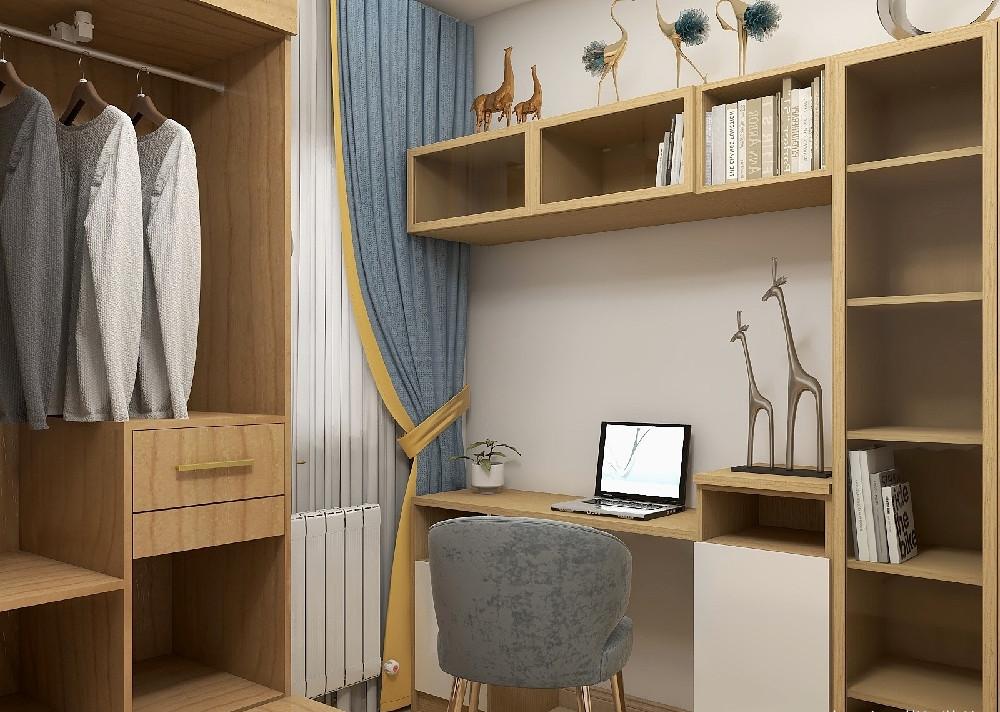 卧室里的定制衣柜与书柜是空间的收纳诗人,沿着墙体的弧度生长,把每一寸角落都变成实用的温柔乡,衣物与书籍各得其所,连空气里都飘着整洁的惬意。