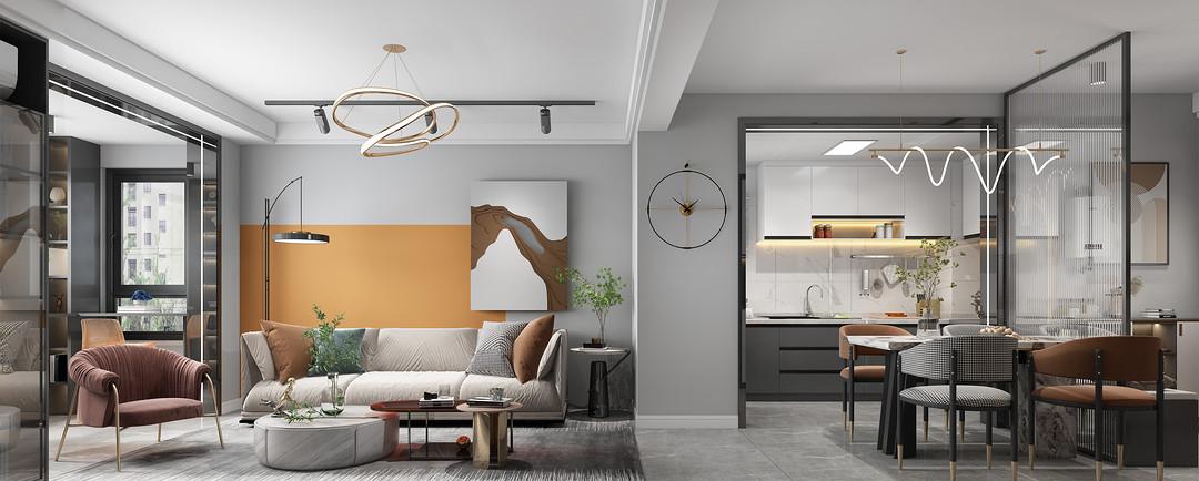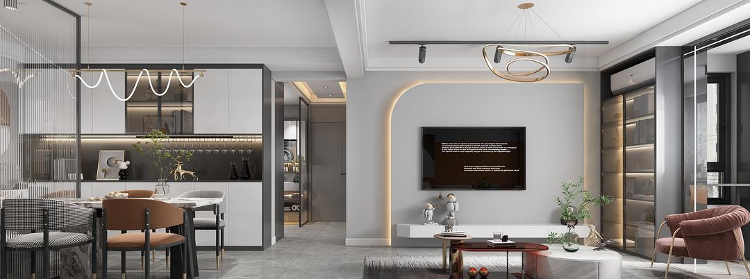 客厅是温馨的主场,暖白色墙面像一层温柔的滤镜,包裹着归家的每一刻。顶面的纯白色石膏板悬浮吊顶,配着黑色磁吸轨道灯,周边以双眼皮石膏板收边,层层叠叠的设计让空间更显舒展,高级感不经意间流露。沙发背景墙用当下流行的硬包与木饰面交织,内嵌的线性灯洒下柔和光晕,连空气都变得柔软;电视墙则以利落岩板搭配展示柜,笔直线条勾勒出硬朗质感,默默诉说着主人对生活品质的坚持。