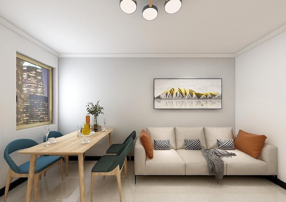 客厅披上细腻的乳胶漆外衣,搭配灵动的石膏线勾勒,简约中透着精致感,仿佛给空间镶上了温柔的边框。