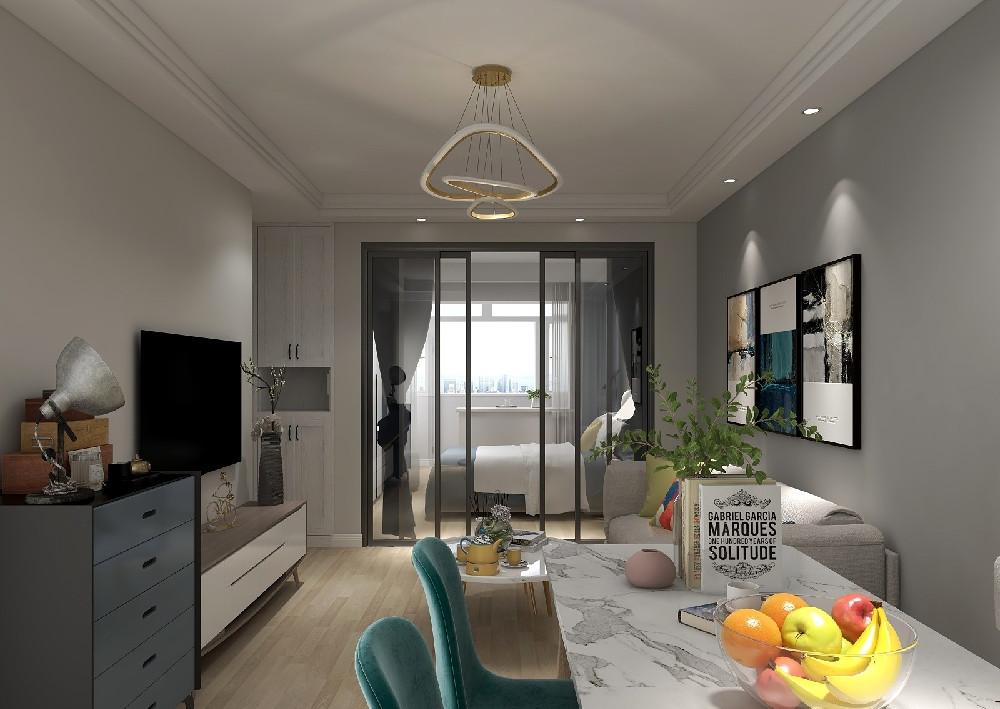 客厅的不锈钢吊顶以流畅弧线勾勒,像一道轻盈的天际线悄悄抬升了空间的呼吸感,冷硬金属竟也生出几分柔和韵律。电视墙藏着小心机:黑色岩板勾勒出屏幕的专属领地,背后镜面如灵动的光影魔术师,与岩板交错出层层叠叠的视觉迷宫。