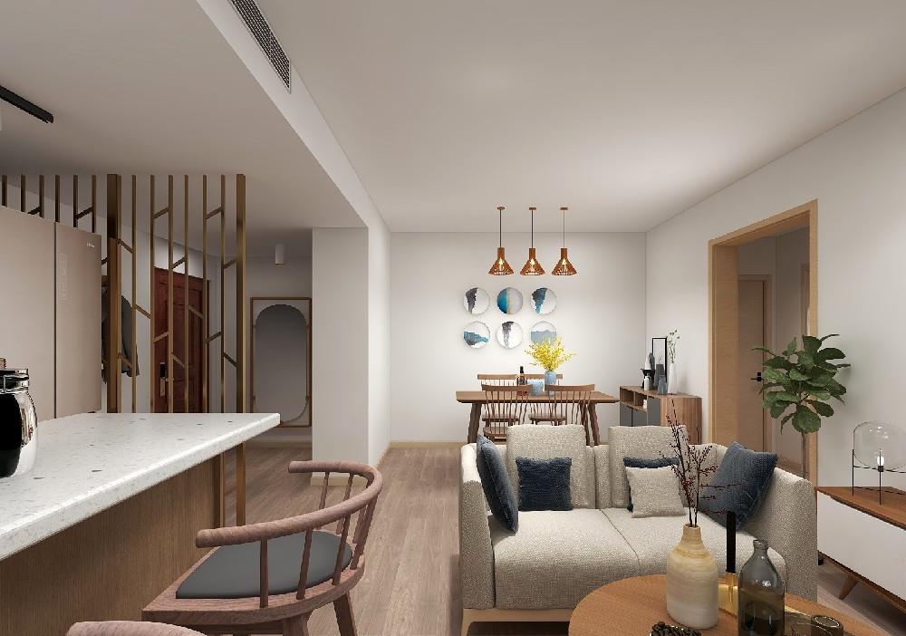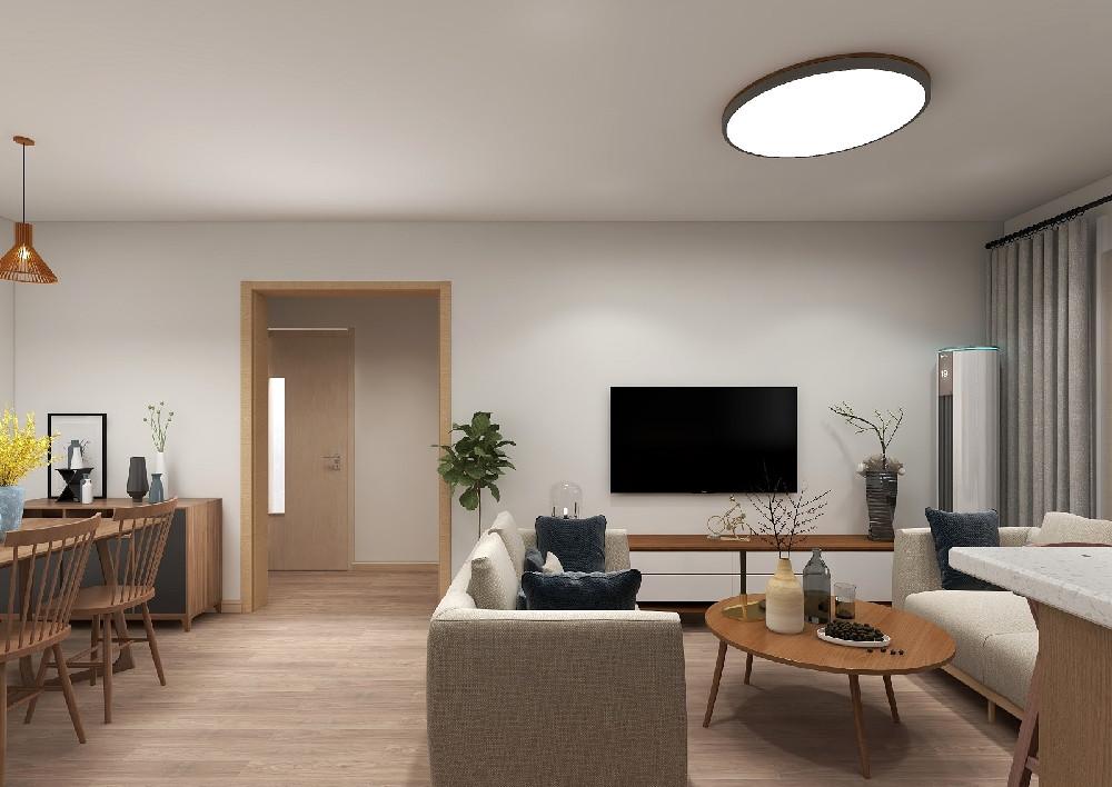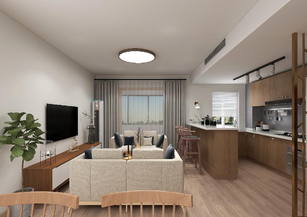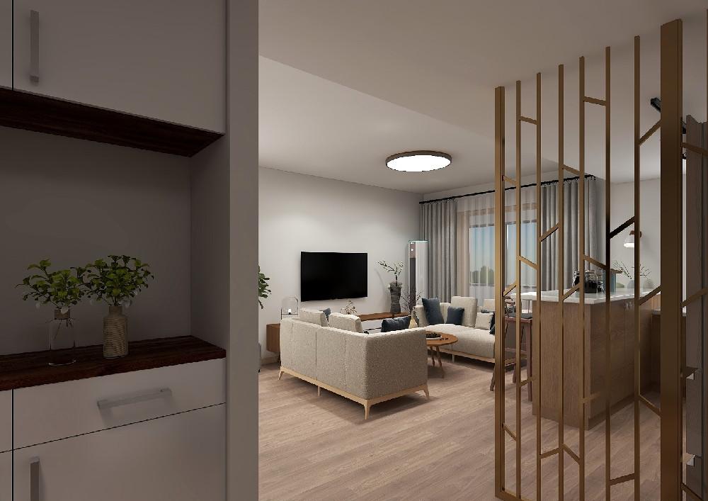 客厅两张沙发舒展身姿,像是为小户型量身定制的拥抱,既留住了足够的活动天地,又让亲友相聚时满是惬意。脚下的木地板缓缓铺开,带着温润的质感,给整个空间铺上一层柔和的底色。