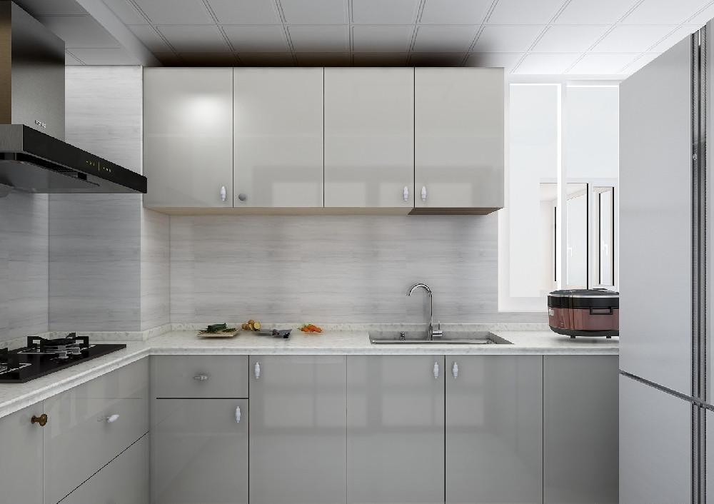 厨房采用L 型布局,巧妙利用转角空间,让洗、切、炒的操作动线行云流水;封闭式推拉门轻轻一滑,便将油烟与外界隔绝,既保留了烹饪的烟火气,又守护了客厅的洁净。