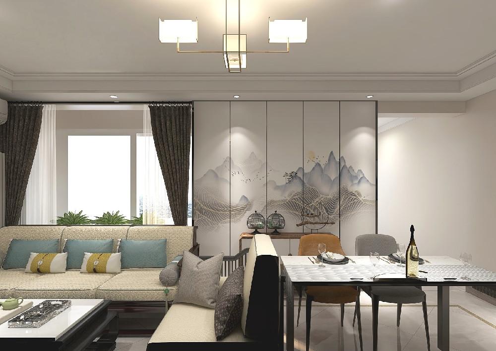 客厅的双层叠级吊顶如同轻盈舒展的眼帘,勾勒出温柔的层次感;量身定制的收纳柜化身藏物能手,将生活杂物妥帖安放,让空间始终保持清爽利落。电视背景墙则以山水纹护墙板为画布,仿佛将自然景致引入室内,一抬头便能与诗意山水撞个满怀。