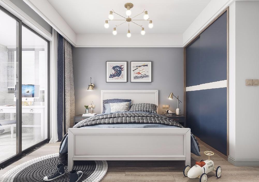 儿童房装上推拉门,开合之间省出更多活动空间,阳台被巧妙改造成学习区,阳光透过窗户洒在书桌上,陪伴孩子在知识的世界里自在探索。