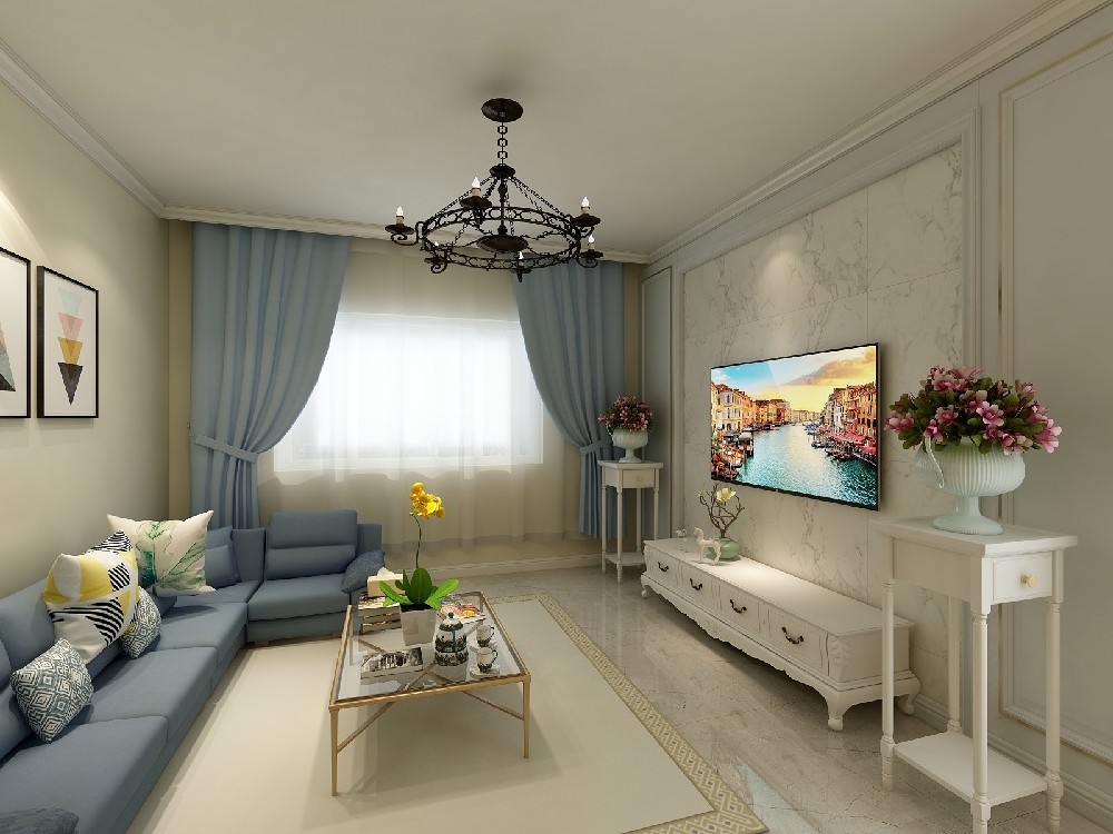 客厅设计以石膏线嵌金属饰条勾勒空间层次,墙面通刷质感乳胶漆,让简约基调中透着细腻的轻奢感,光影流转间尽显雅致格调。