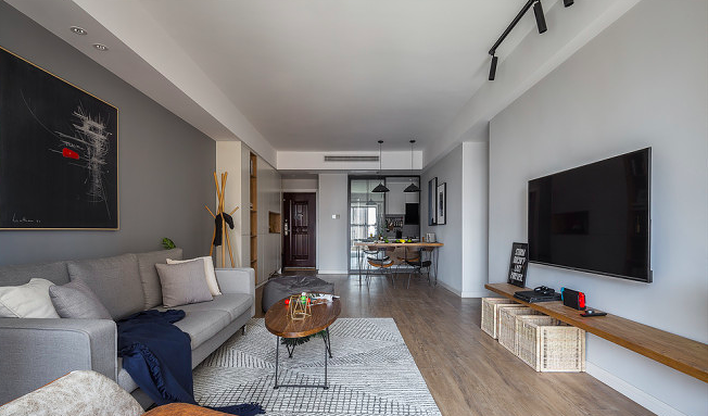 走进客厅,无主灯设计更显高级质感。筒灯铺陈均匀柔和的基础光,驱散角落阴影;射灯巧妙聚焦装饰画或摆件,勾勒空间层次。脚下温润的木地板延伸至休闲阳台,光脚踩上去满是暖意,在这里看书、晒太阳,惬意时光随手可得。