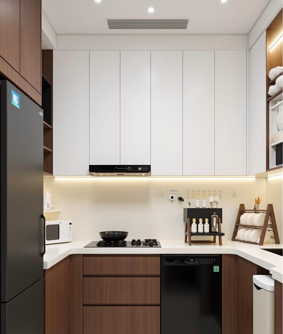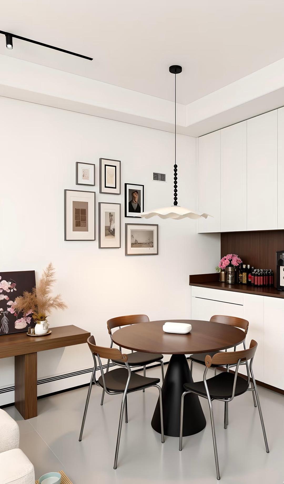 功能复合化设计让复古美学落地日常,兼具储物功能的雕花立柜、可变形的中古餐桌、暗藏收纳的弧形卡座,在不破坏优雅调性的前提下,满足多元生活场景。在这里,每一处细节都是时光的注脚,既有中世纪的古典庄重,又有现代生活的松弛自在,让居住成为一场与过往岁月温柔对话的日常。