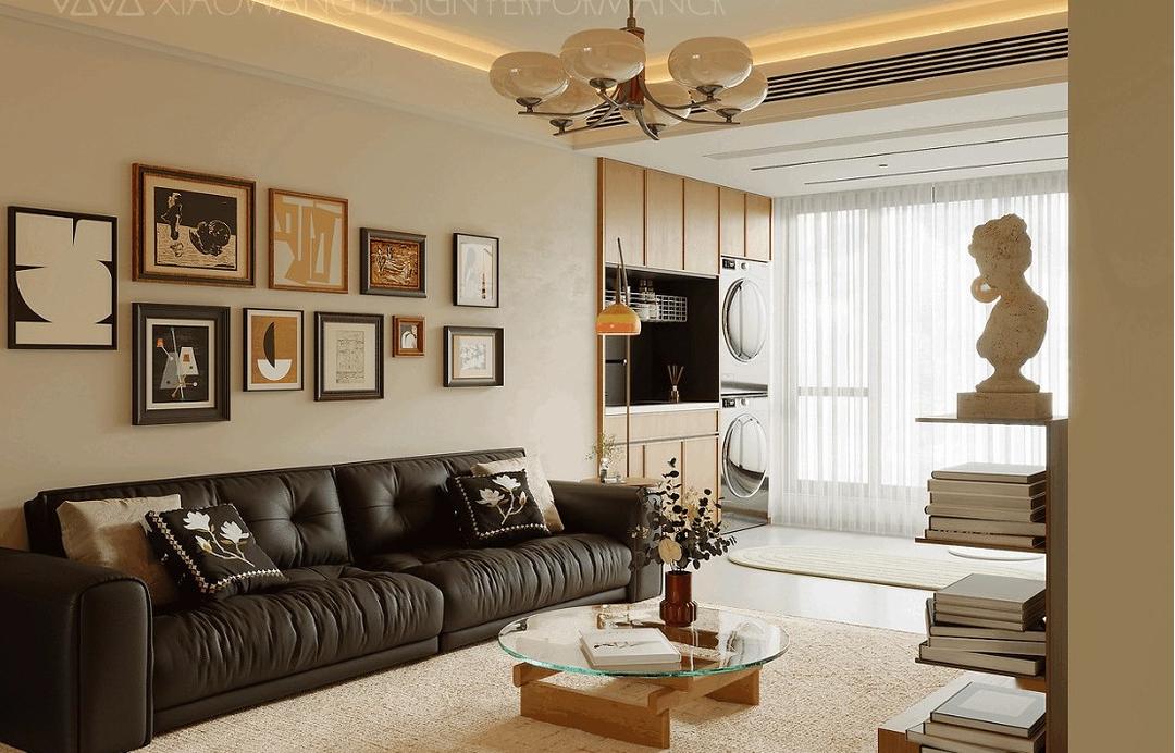 该复古风装修设计案例以暖调材质为基底,胡桃木的温润肌理、手工陶砖的粗粝质感与亚麻织物的柔软触感交织,在光影流转间晕染出岁月沉淀的温度。弧形线条勾勒空间轮廓,穹顶般的门洞、柔美的沙发曲线与圆形餐台相呼应,消解现代生活的锐利棱角,复现中世纪建筑的浪漫韵律。