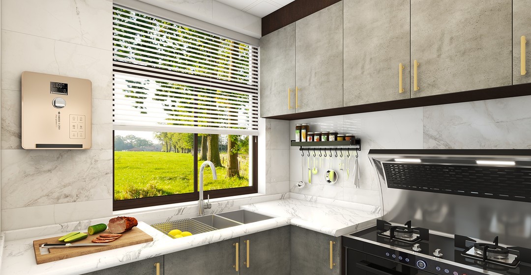 厨房则是时尚与实用的结合,岩板柜面质感拉满,搭配金色拉手,瞬间提升整个空间的精致度,做饭都变成了一种享受。