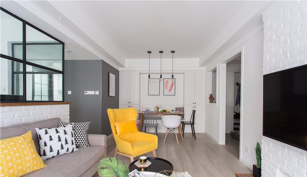 大客厅以隔断巧思开辟独立书房,公私区域灵活划分;电视与沙发背景墙采用艺术化设计,瞬间提升空间格调,成为家居颜值担当。