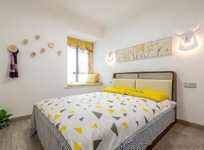 大白墙:卧室摒弃繁琐装饰,纯白墙面搭配简约装饰画,温馨治愈。