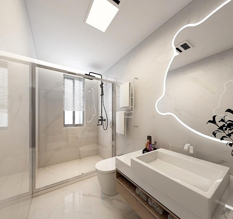 卫生间采用干湿分区的智慧布局,以玻璃隔断打造清爽的功能结界,让洗漱与沐浴区域各自独立又和谐共生,演绎现代卫浴的舒适哲学。