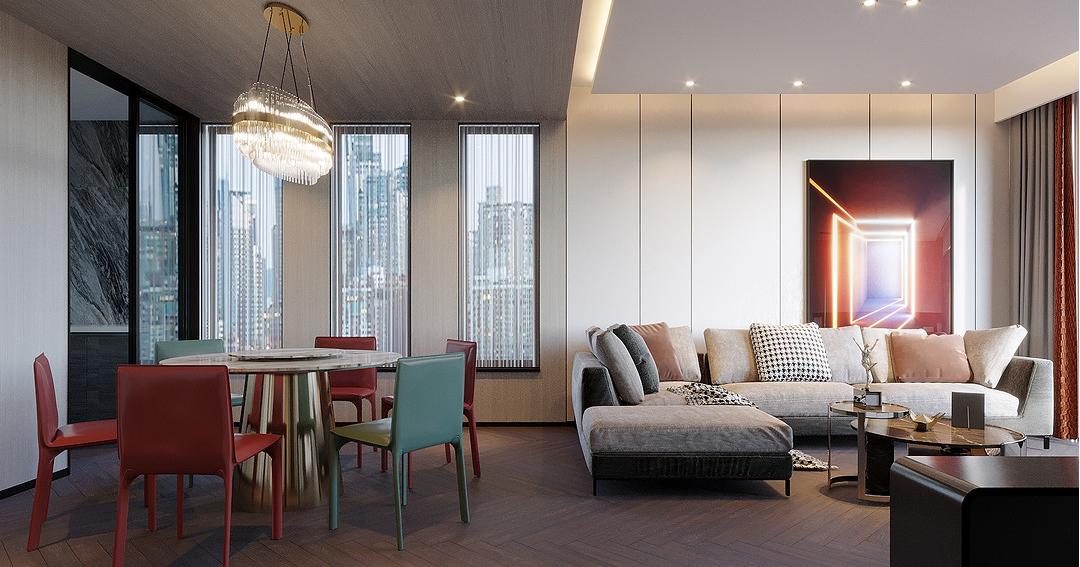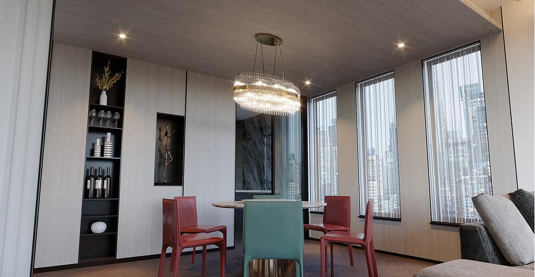 餐边柜设计暗藏巧思,通过调整原始墙体结构打造内嵌式布局,使柜体与现有墙面实现完美齐平,消弭了突兀感。这种一体化设计不仅极大提升了空间的整洁度与视觉完整性,还最大化利用了储物空间,让实用功能与美学设计无缝融合。